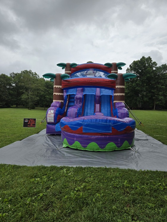 Whether it's a birthday bash a family reunion or a casual weekend get-together our 16' Water Slide in Western KY is the highlight of any event. Allow your guests to enjoy a thrilling ride down the slide while keeping safety a top priority. Its vibrant tropical hurricane theme sets the tone for an adventurous day engaging kids and adults alike. With easy setup and take down you can focus on the fun rather than the logistics.