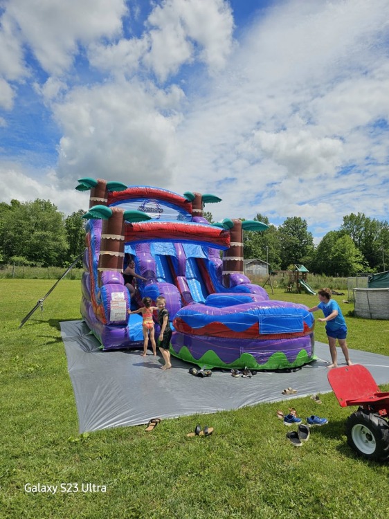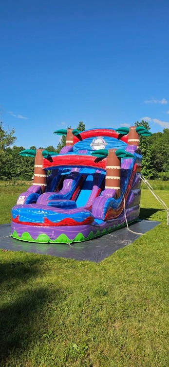 Transform your backyard into a tropical paradise with our vibrant 16' Water Slide in Western KY. This water slide is the perfect addition to any outdoor gathering offering an exhilarating experience for kids and even adults who are young at heart. Imbued with a playful Tropical Hurricane vibe this slide sports a stunning mix of red blue green and purple colors that easily capture the essence of a fun summer day. 🌴🌈